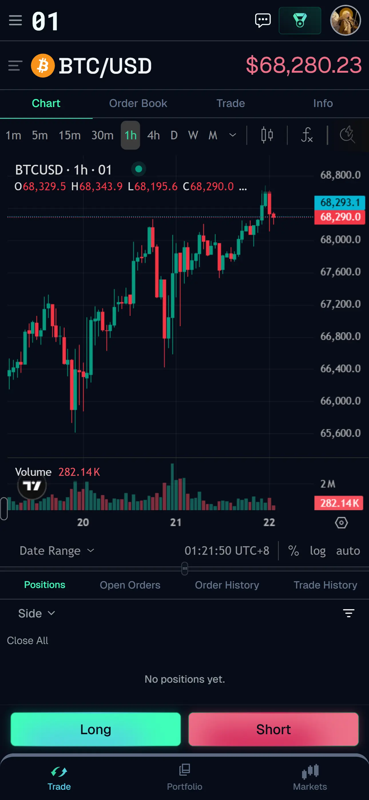 01 allows you to trade a variety of markets with the speed of centralized exchanges and the integrity of decentralized exchanges.